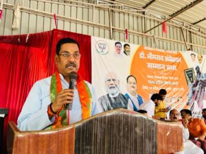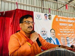 प्रथम सत्र के मुख्य अतिथि श्री धर्मेन्द्र सिंह, विधान परिषद सदस्य एवं प्रदेश उपाध्यक्ष, भाजपा (उत्तर प्रदेश) रहे। उन्होंने अपने संबोधन में कहा कि भाजपा डॉ. अंबेडकर के विचारों को जन-जन तक पहुंचाने के लिए निरंतर कार्य कर रही है। उन्होंने आरोप लगाया कि 1937 से 1954 तक कांग्रेस ने डॉ. अंबेडकर को एक बार भी चुनाव लड़ने का अवसर नहीं दिया और उनके विरोध में प्रचार तक किया गया। यहां तक कि उनके अंतिम संस्कार के लिए भी कांग्रेस सरकार ने स्थान नहीं दिया।