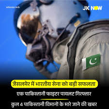 भारत-पाकिस्तान में बढ़ते तनाव के बीच एक बड़ी खबर सामने आई है। भारतीय सेना ने ऑपरेशन के दौरान 2 पाकिस्तानी पायलट को हिरासत में लिया है। दोनों पायलट पाकिस्तानी वायुसेना के JF-17 लड़ाकू विमान में सवार थे। इस लड़ाकू विमान को भारत ने मार गिराया था। बताया जा रहा है कि इस पायलट को राजस्थान के लाठी से पकड़ा गया है। बताया जा रहा कि पायलट को सीक्रेट जगह पर ले जाया गया है। जहां उससे पूछताछ जारी है। भारतीय अधिकारियों ने अभी तक पायलट की पहचान सार्वजनिक नहीं की है, लेकिन माना जा रहा है कि वे पाकिस्तानी वायुसेना का वरिष्ठ अधिकारी भी हो सकता है।
