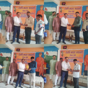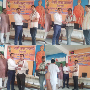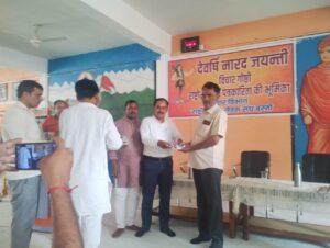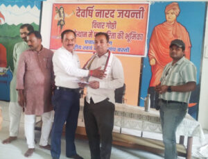 महर्षि नारद जी की जयंती पर आयोजित गोष्ठी पत्रकारिता पर आधारित थी। जिसका विषय था राष्ट्रोत्थान में पत्रकारिता की भूमिका। इसी भावना को ध्यान में रखते हुए कार्यक्रम में पधारे पत्रकार बन्धुओं को सम्मानित किया गया। इस अवसर पर वरिष्ठ पत्रकार पुनीत दत्त ओझा, सुनील मिश्र, सतीश श्रीवास्तव, संतोष सिंह, सर्वेश श्रीवास्तव, अशोक पाण्डेय एवं आशु अनादि सहित कार्यक्रम में उपस्थित सभी पत्रकारों को सम्मानित किया गया।