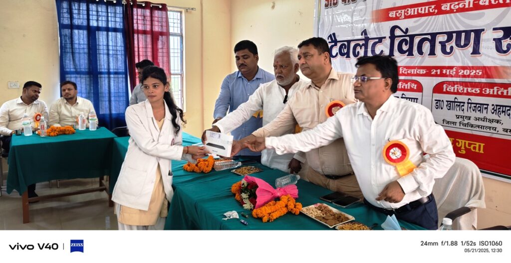 बस्ती (उ. प्र.)। डा. वी.के. वर्मा इंस्टीट्यूट ऑफ मेडिकल सांइस बसुआपार के डी. फार्मा के 32 छात्र – छात्राओं में 21 मई को टैबलेट का वितरण किया गया। मुख्य अतिथि के रूप में कार्यक्रम को सम्बोधित करते हुये मुख्य चिकित्साधिकारी डा. राजीव निगम ने कहा कि शिक्षा का स्वरूप बदल रहा है और आज के छात्र ए.आई. तकनीक से भी शिक्षा ग्रहण कर रहे हैं। ऐसे में छात्रों के लिये टैबलेट बहु उपयोगी साबित होगा।