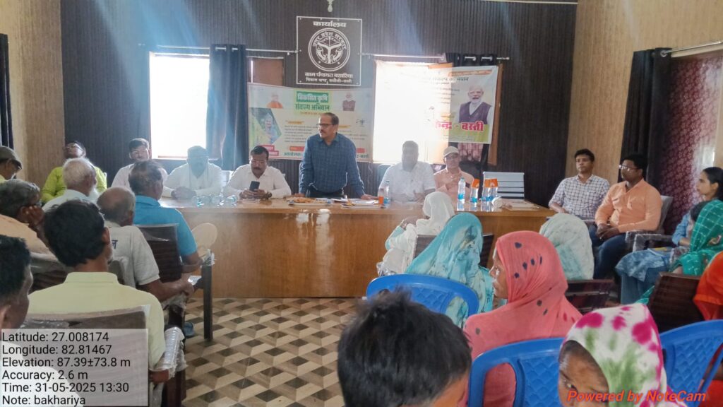 बस्ती (उ. प्र.)। उत्तर प्रदेश शासन व कृषि निदेशालय एवं कृषि मंत्रालय भारत सरकार के निर्देशन में जनपद के विकास खण्ड रुधौली के ग्रामसभा बखरिया में “विकसित कृषि संकल्प अभियान योजना” के अंतर्गत एक विशेष कृषि जागरूकता कार्यक्रम का आयोजन किया गया। इस कार्यक्रम का उद्देश्य किसानों को कृषि से संबंधित नवीनतम तकनीकों, योजनाओं एवं प्राकृतिक खेती की पद्धतियों से अवगत कराना है। कार्यक्रम के निरीक्षण एवं मार्गदर्शन हेतु शासन द्वारा नामित नोडल अधिकारी टी.एम. त्रिपाठी, अपर निदेशक कृषि (कृषि रक्षा), उत्तर प्रदेश शासन, लखनऊ तथा जनपद स्तरीय नोडल अधिकारी अशोक गौतम, उप कृषि निदेशक, ने ग्रामसभा का भ्रमण किया। दोनों अधिकारियों ने खेतों और किसानों से सीधा संवाद स्थापित कर शासन द्वारा संचालित विभिन्न कृषि योजनाओं की जानकारी दी एवं उनके लाभों पर चर्चा की।