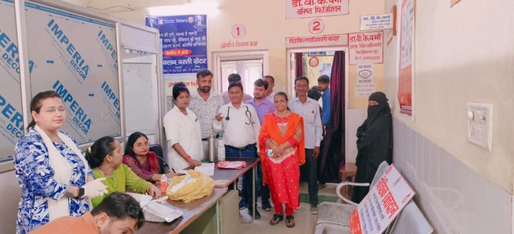 बस्ती (उ. प्र.)। जिला चिकित्सालय बस्ती के आयुष विंग में ब्लड ग्रुपिंग और हीमोग्लोबिन के निःशुल्क जांच शिविर का आयोजन आयुष चिकित्साधिकारी डॉ. वी.के. वर्मा नेतृत्व में किया गया। एवं स्वैक्षिक रक्तदान के लिए प्रोत्साहित किया गया।