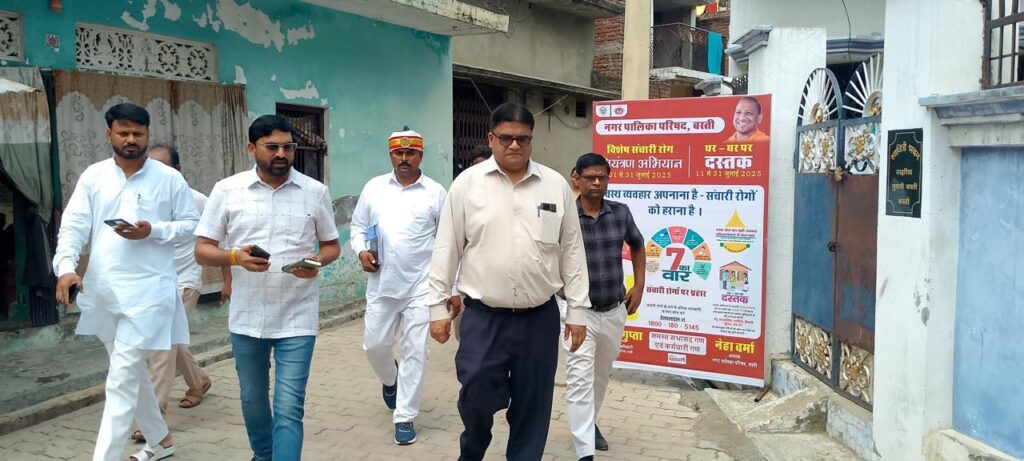 बस्ती (सू.वि. उ. प्र.)। जिलाधिकारी रवीश गुप्ता ने नगर पालिका परिषद के अन्तर्गत नरहरिया वार्ड में संचारी रोग नियंत्रण अभियान का आकस्मिक निरीक्षण किया। निरीक्षण के दौरान उन्होंने पाया कि नालियों में एंटीलार्वा छिड़काव व फागिंग का कार्य किया जा रहा है। वार्ड के सभासद द्वारा अवगत कराया गया कि सुबह इस वार्ड की साफ-सफाई चेक की गयी है, वार्ड में सफाई कर्मचारी का स्टाफ बहुत कम है, स्टाफ बढ़ाने की आवश्यकता है।