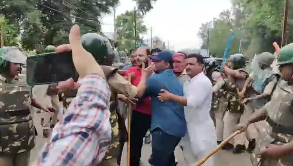 हरदा (म. प्र.)। मध्य प्रदेश के हरदा जिले में 12 जुलाई शनिवार शाम करणी सेना के प्रदर्शन ने अचानक हिंसक मोड़ ले लिया। पुलिस पर एक ठगी के मामले में पैसा लेकर आरोपी को बचाने का आरोप है। इसी मामले में करणी सेना के जिलाध्यक्ष सुनील सिंह राजपूत के नेतृत्व में कार्यकर्ता सिटी कोतवाली थाने के बाहर प्रदर्शन करने पहुंचे थे। इस दौरान पुलिस और प्रदर्शनकारियों के बीच तीखी बहस हुई, जिसके बाद पुलिस ने बल प्रयोग किया। पुलिस ने प्रदर्शनकारियों पर पानी की बौछारें, आंसू गैस के गोले और लाठियां चलाईं, जिसका वीडियो भी वायरल हो रहा है। पुलिस ने इस मामले में करणी सेना जिलाध्यक्ष सुनील सिंह राजपूत, आशीष राजपूत, शुभम और रोहित के खिलाफ शांति भंग करने का मामला दर्ज किया और जेल भेज दिया।