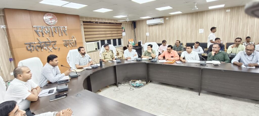 बस्ती (उ.प्र. सू.वि.)। मुख्य विकास अधिकारी सार्थक अग्रवाल की अध्यक्षता में कलेक्ट्रेट सभागार में जिला उद्योग बन्धु व व्यापार बन्धु समिति की बैठक सम्पन्न हुआ। बैठक में उद्यमीगण, व्यापार संघो के प्राधिकारी, स्थानीय व्यापारीगण, संबंधित विभागों के अधिकारी उपस्थित रहें। बैठक में व्यापारियों ने सड़क जाम की समस्या, विद्युत पोल, खराब स्ट्रीट लाईट, सड़को की खराब हलात व मरम्मत में देरी, नाली को आधा-अधूरा बनाकर छोड़ देना जैसे मुद्दों से अवगत कराया।