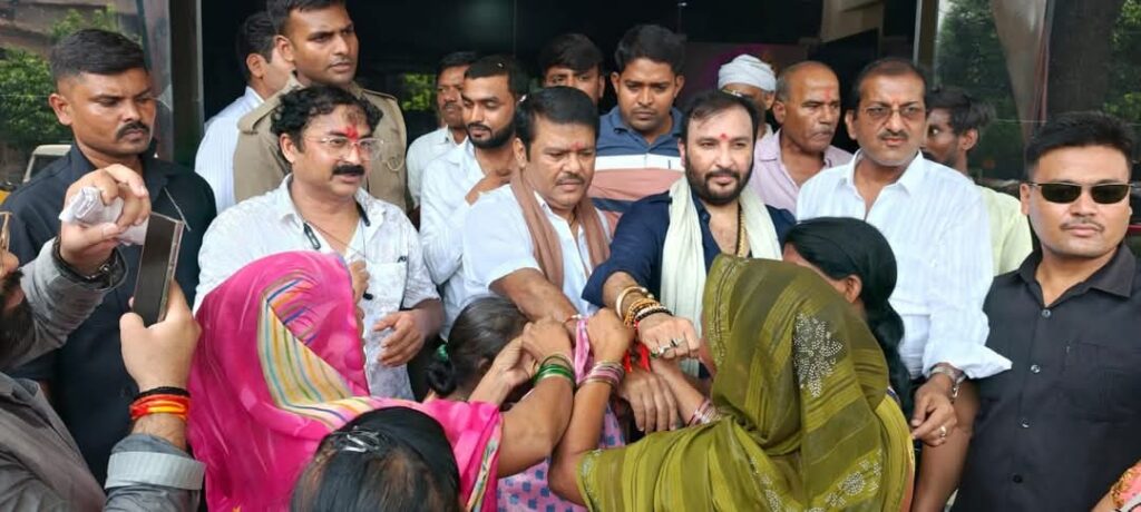 बस्ती (उ. प्र.)। बस्ती जिला मुख्यालय के न्याय मार्ग स्थित पूर्व मंत्री राज किशोर सिंह के कैम्प कार्यालय पर एक भव्य रक्षा बंधन समारोह का आयोजन किया गया। कार्यक्रम में हजारों की संख्या में हरैया विधानसभा की माताओं – बहनों ने शामिल होकर पूर्व मंत्री श्री राज किशोर सिंह एवं पूर्व राज्य मंत्री बृज किशोर सिंह डिम्पल को राखी बांधी और जीवन में हर क्षेत्र में सफलता की कामना की।