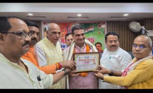 (प्रेस क्लब बस्ती के अध्यक्ष विनोद उपाध्याय को सम्मानित किया गया)