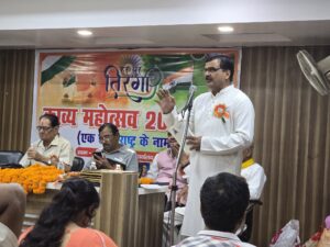 सिद्धार्थ नगर (उ. प्र.)। स्वतंत्रता दिवस की पूर्व संध्या पर प्रधानमंत्री नरेंद्र मोदी के हर घर तिरंगा अभियान को शत प्रतिशत सफल बनाने के उद्देश्य से नगर पालिका परिषद सिद्धार्थनगर के सभागार में एक कवि सम्मेलन का आयोजन किया गया। हर घर तिरंगा, विषय वस्तु पर 14 अगस्त 2025 को शहीदों को नमन किया गया। विभाजन विभीषिका की पीड़ा का स्मरण किया गया। काव्य में मुख्य नौ रसों श्रृंगार, हास्य, करुण, रौद्र, वीर, भयानक, वीभत्स, अद्भुत और शांत रस का सभी कवियों ने श्रोताओं में संचार किया। हास्य भी रहा और व्यंग्यधर्मी रचनाएं भी सुनी और सराही गईं। कार्यक्रम का संयोजन एवं संचालन साहित्य संगम की अध्यक्ष और भूगोल की असिस्टेंट प्रोफेसर डॉ. सीमा मिश्रा ने किया। कवि सम्मेलन एक शाम राष्ट्र के नाम पर समर्पित रहा।