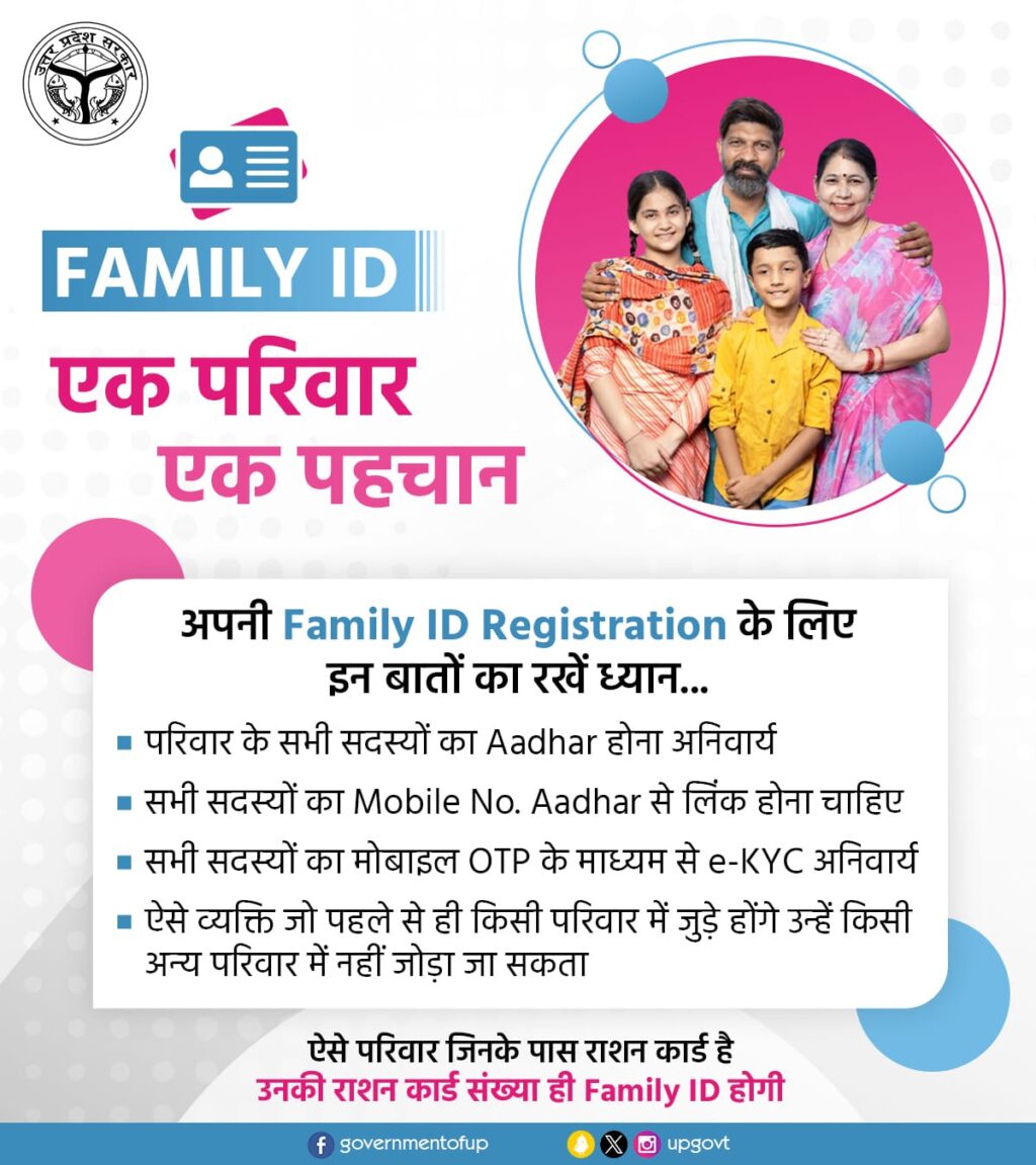 उन्होने बताया कि फैमिली आईडी सहज जन सेवा केन्द्र, पंचायत सहायक तथा स्वंय ऑन लाइन माध्यम से बनवाया जा सकता है। यदि आधार कार्ड में अंकित मोबाइन नं. खो गया हो या किसी कारण से बंद हो गया हो, तो नया मोबाइल नम्बर नजदीकी किसी सी०एस०सी० अथवा क्षेत्र के पोस्टमैन द्वारा 50 रू० शुल्क देकर नम्बर अपडेट कराया जा सकता है। उन्होने यह भी बताया है कि जनता में भ्रम की स्थिति है कि फैमिली आईडी बन जाने से राशन कार्ड नहीं बन पायेगा, परन्तु इस सम्बन्ध में शासन स्तर से शासनादेश निर्गत है कि फैमिली आईडी बनने के बाद भी यदि लाभार्थी राशन कार्ड के पात्र होंगे तो राशन कार्ड भी बनाया जायेगा। अतः आप सर्वसाधारण से जिला प्रशासन द्वारा अपील की जाती है कि राशन कार्ड से वंचित परिवार अपना फैमिली आई०डी० अनिवार्य रूप से बनवायें, जिससे योजनाओं का लाभ प्राप्त होने में असुविधा न हो।