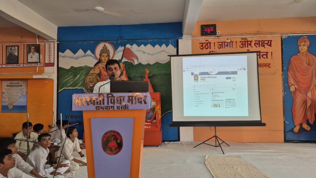 बस्ती (उ.प्र.)। सरस्वती विद्या मंदिर वरिष्ठ माध्यमिक विद्यालय, रामबाग, बस्ती में विद्या भारती गोरक्ष प्रांत के तत्वावधान में बुधवार 27 अगस्त को विद्यालय स्तर पर प्रचार विभाग द्वारा कार्यशाला का आयोजन किया गया। इस अवसर पर विद्यालय के आचार्य एवं प्रांत संयोजक प्रचार विभाग अंकित कुमार गुप्ता ने उपस्थित सभी भैया, छात्र संसद भैयाओं, विद्यालय के मीडिया प्रमुखों एवं आचार्य बंधुओं को संबोधित करते हुए सोशल मीडिया की महत्ता पर प्रकाश डाला। उन्होंने सभी से Facebook, Twitter (X), Instagram, YouTube जैसे सोशल मीडिया प्लेटफ़ॉर्म से जुड़ने का आह्वान किया, ताकि विद्यालय एवं संगठन से संबंधित सभी जानकारियाँ समय पर प्राप्त हो सकें।