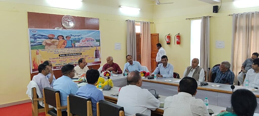 बस्ती (सू.वि. उ.प्र.)। उत्तर प्रदेश को 2047 तक सबसे विकसित और आत्मनिर्भर राज्य बनाने के उद्देश्य से प्रदेश सरकार ने समृद्ध का शताब्दी संकल्प 2047 की दिशा में ठोस कदम उठाना शुरू कर दिये है। इसी क्रम में शासन द्वारा नामित सेवानिवृत्त आईएएस ओ.एन. सिंह की अध्यक्षता में कलेक्ट्रेट सभागार में एक महत्वपूर्ण बैठक आयोजित की गयी, जिसमें उद्यमियों, स्वयं सहायता समूह की महिलाओं से संवाद स्थापित किया गया। इस अवसर पर शासन द्वारा नामित सेवानिवृत्त कर्नल के.सी. मिश्र, सेवानिवृत्त प्रो.टी.डी. कालेज जौनपुर डा. आर.एन. ओझा, कार्यरत वरिष्ठ वैज्ञानिक एवं अध्यक्ष आचार्य नरेन्द्र देव कृषि एवं प्रौद्योगिक विश्वविद्यालय कुमार गंज अयोध्या डा. वी.पी. शाही, सेवानिवृत्त प्रमुख अभियन्ता लो.नि.वि. संजय कुमार श्रीवास्तव भी उपस्थित रहे।