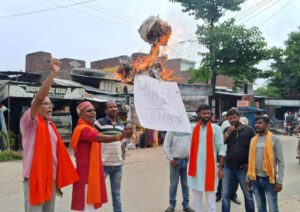 बस्ती (उ. प्र.)। भारत और पाकिस्तान के बीच क्रिकेट मैच के विरोध में आज बस्ती में समाजवादी पार्टी ने बीसीसीआई का पुतला फूंका तो दूसरी ओर शिवसेना ने पाकिस्तान का पुतला जलाकर अपना विरोध प्रदर्शन किया। एशिया कप 2025 का दुबई में भारत-पाकिस्तान के बीच मैच का बस्ती में मुखर विरोध हुआ।