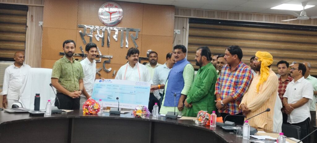 बस्ती (उ. प्र.)। सृजन के देवता भगवान विश्वकर्मा जयंती एवं प्रधानमंत्री नरेन्द्र मोदी के जन्मदिन के अवसर पर कलेक्ट्रेट में विश्वकर्मा श्रम सम्मान योजना के अन्तर्गत ऋण वितरण किया गया। जिसके मुख्य अतिथि उप्र. गौ सेवा आयोग के उपाध्यक्ष महेश शुक्ल एवं भाजपा विधायक अजय सिंह रहे। कार्यक्रम सूक्ष्म, लघु एवं मध्यम उद्यम विभाग उप्र. द्वारा आयोजित किया गया।