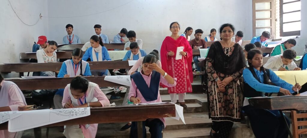 बस्ती (उ. प्र.)। राजकीय कन्या इण्टर काॅलेज बस्ती में सेवा पखवाड़ा- 2025 के अन्तर्गत विकसित भारत, आत्मनिर्भर भारत एवंं डिजिटल भारत की संकल्पना पर आधारित जनपद स्तरीय चित्रकला प्रतियोगिता आयोजित की गई। प्रतियोगिता में जूनियर वर्ग (कक्षा 9 से 12) एवं सीनियर वर्ग (स्नातक) के छात्र एवं छात्राएं सम्मिलित हुए। जिसमें जूनियर वर्ग में बेगम खैर गर्ल्स इण्टर काॅलेज, जी आर एस इण्टर काॅलेज, देशराज नारंग इण्टर काॅलेज, जनता उ. मा.विद्यालय भादी मझरिया, रा.उ.मा. विद्यालय महुलानी, अपरवल राव राम बख्श सिंह इण्टर काॅलेज एवं राजकीय कन्या इण्टर काॅलेज बस्ती के छात्र/छात्राओं ने प्रतिभाग किया।