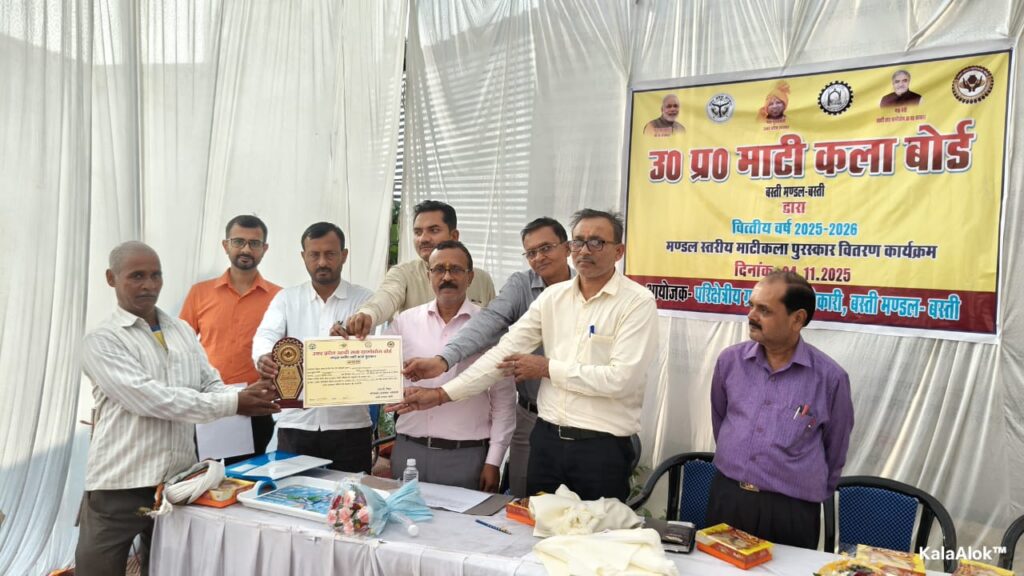 बस्ती (सू.वि. उ.प्र.)। उत्तर प्रदेश माटी कला बोर्ड बस्ती मण्डल में माटी कला शिल्पकार पुरस्कार योजना के अंतर्गत मण्डल स्तरीय पुरस्कार वितरण कार्यक्रम परिक्षेत्रीय ग्रामोद्योग अधिकारी कार्यालय परिसर में आयोजित किया गया। कार्यक्रम में बस्ती मण्डल के बस्ती, संतकबीरनगर, सिद्धार्थनगर के प्रजापति समुदाय के उत्कृष्ट माटी कला से जुड़े कलाकारों ने प्रतिभाग किया। परिक्षेत्रीय ग्रामोद्योग अधिकारी एल0बी0 सिंह ने बताया कि शासन द्वारा संचालित इस योजना के अंतर्गत उत्कृष्ट कलाकृतियों के निर्माण में अपने कौशल और हुनर का प्रयोग कर अग्रणी भूमिका निभाने वाले कलाकारों का समिति के माध्यम से चयन किया जाता है तथा उत्कृष्ट प्रतिभागियों में प्रथम, द्वितीय एवं तृतीय स्थान प्राप्तकर्ता को पुरस्कृत भी किया जाता है।