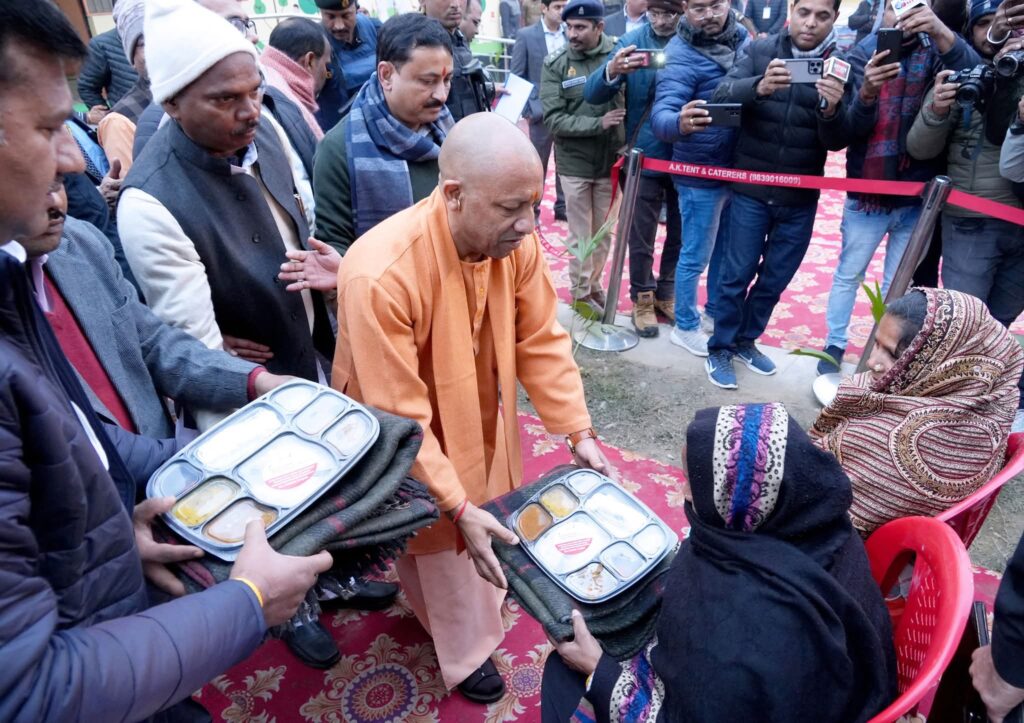 गोरखपुर। मुख्यमंत्री योगी आदित्यनाथ ने आज गोरखपुर में रैन बसेरों में निवास कर रहे लोगों को भोजन और कम्बल वितरण किया।