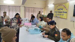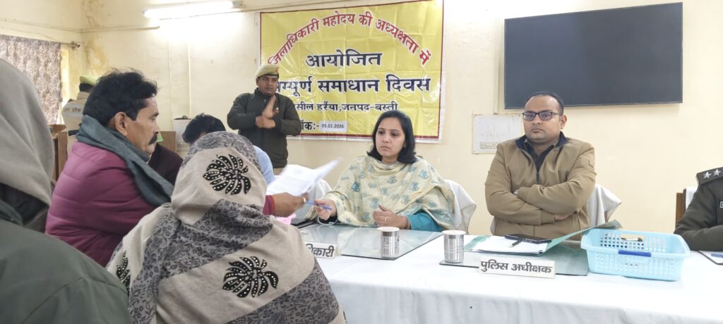 बस्ती (सू.वि.उ.प्र.)। शासन की प्राथमिकताओं के अनुरूप आज तहसील हर्रैया सभागार में सम्पूर्ण समाधान का आयोजन जिलाधिकारी कृतिका ज्योत्सना की अध्यक्षता में किया गया। इस अवसर पर जनपद के विभिन्न क्षेत्रों से आये नागरिकों ने अपनी समस्याएं जिलाधिकारी के समक्ष रखी। जिलाधिकारी ने प्रत्येक शिकायत को गम्भीरता को सुनते हुए संबंधित विभागीय अधिकारियों को त्वरित एवं गुणवत्तापूर्ण निस्तारण के निर्देश दिये। सम्पूर्ण समाधान दिवस के दौरान कुल 59 प्रार्थना पत्र प्राप्त हुए, जिसमें से मौके पर 07 निस्तारण किया गया।