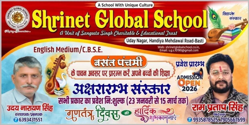 बस्ती (उ.प्र.)। स्थानीय शहर से सटे हंड़िया में संचालित श्रीनेत ग्लोबल स्कूल उदय नगर शिक्षा के क्षेत्र में गुणवत्ता और नवाचार की दिशा में निरंतर अपनी अलग पहचान बना रहा है। यह विद्यालय न केवल बच्चों को आधुनिक और गुणवत्तापूर्ण शिक्षा प्रदान कर रहा है, बल्कि उनके सर्वांगीण विकास के लिए संस्कार और विज्ञान का भी उत्कृष्ट समावेश कर रहा है।