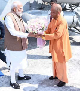 (मुख्यमंत्री योगी आदित्यनाथ ने किया मोदी का स्वागत)