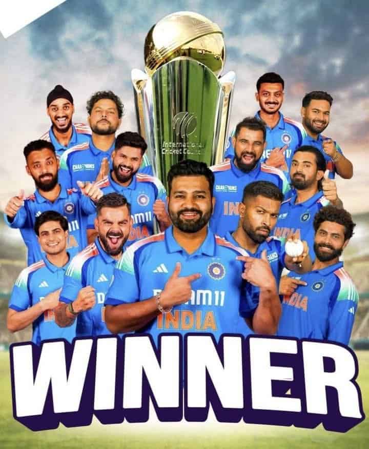 नई दिल्ली। भारतीय क्रिकेट टीम ने तीसरी बार आईसीसी चैंपियंस ट्रॉफी जीत ली है। भारतीय टीम दुनिया की इकलौती टीम है, जिसने तीन बार चैंपियंस ट्रॉफी जीती है। दुबई में खेले गए चैंपियंस ट्रॉफी के फाइनल में भारत को न्यूजीलैंड की ओर से जीत के लिए 252 रन का लक्ष्य मिला था। जिसे भारतीय टीम ने 49 ओवर में छह विकेट गंवाकर हासिल कर लिया।