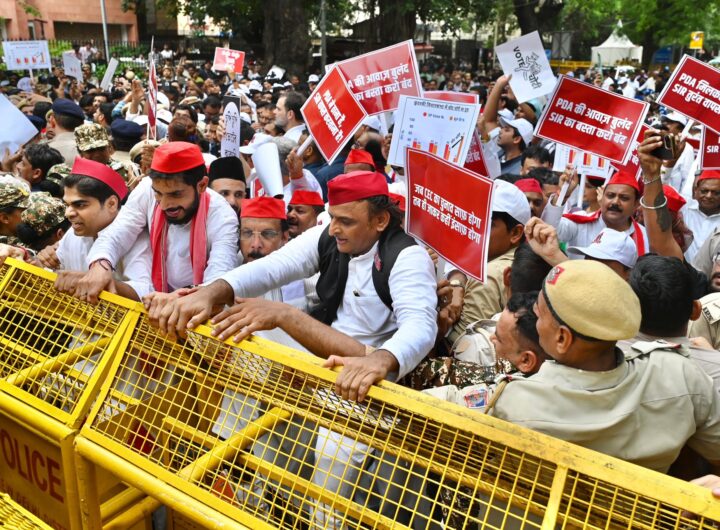 दिल्ली में चुनाव आयोग के खिलाफ हल्ला बोल : राहुल, प्रियंका, अखिलेश सहित 200 गिरफ्तार, बाद में रिहा नई दिल्ली राजनीति राष्ट्रीय दिल्ली में चुनाव आयोग के खिलाफ हल्ला बोल : राहुल, प्रियंका, अखिलेश सहित 200 गिरफ्तार, बाद में रिहा तारकेश्वर टाइम्स August 11, 2025 नई दिल्ली। बिहार में चुनाव आयोग के खिलाफ उठ रही विरोध की आवाज अब दिल्ली तक पहुंच...Read More