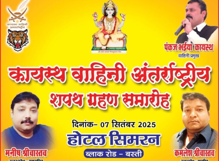 बस्ती में कायस्थ वाहिनी अन्तर्राष्ट्रीय का शपथग्रहण सात को उत्तर प्रदेश बस्ती सामाजिक बस्ती में कायस्थ वाहिनी अन्तर्राष्ट्रीय का शपथग्रहण सात को तारकेश्वर टाइम्स September 4, 2025 Kamlesh Srivastava बस्ती (उ. प्र.)। कायस्थों की एकता और उनके उत्थान के लिये अन्तर्राष्ट्रीय स्तर पर कार्य...Read More